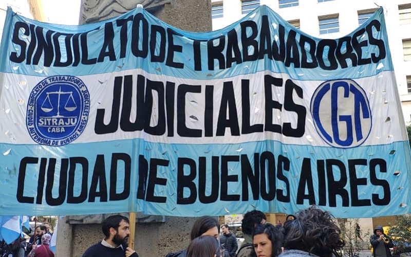 Las empleadas y los empleados judiciales organizados en el Sindicato de Trabajadores de la Justicia de la Ciudad de Buenos Aires (SITRAJU-CABA) se movilizaron en la mañana de hoy martes 16 a la sede del Tribunal Superior de Justicia en Esmeralda 189, casi esquina Diagonal Norte, para reclamar por el atraso salarial y la desigualdad con el régimen laboral del resto de los judiciales de CABA, que se viene incrementando desde la asunción de Inés Weinberg de Roca como presidenta de ese organismo de justicia, hace casi dos años.