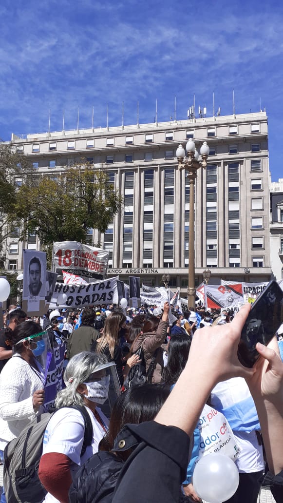 La jornada comenzó a las 9 con una conferencia de prensa en el Obelisco, y continúa con una movilización que irá del Congreso a Plaza de Mayo.  “No somos anti cuarentena. Vamos a marchar con conciencia social, manteniendo la distancia con todos los elementos de bioseguridad. Queremos cambiar el paradigma de enfermería, que enfermería sea una profesión”.