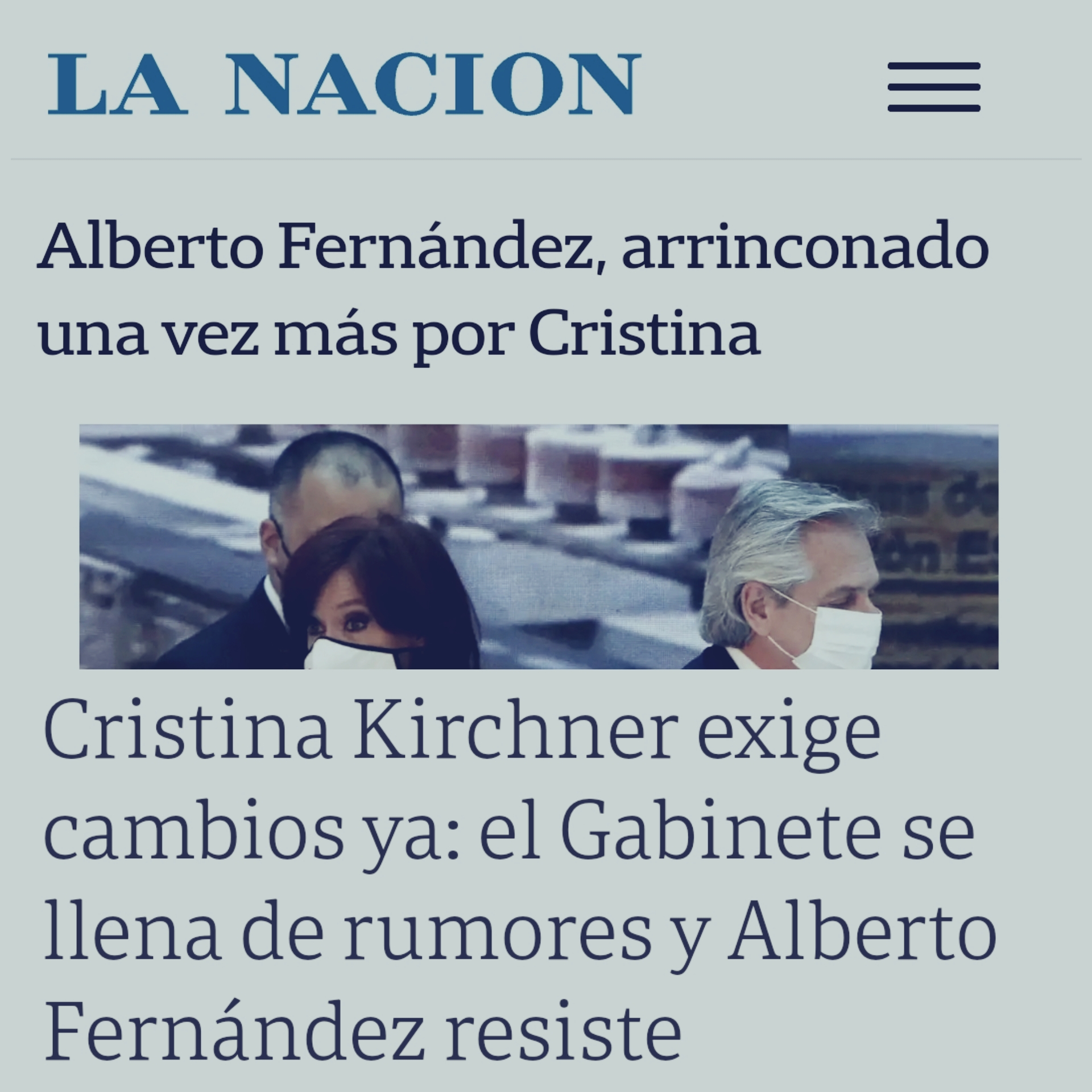 Una constante en los medios argentinos, para la cual se encuentran ejemplos cotidianos con sólo ver Clarín, La Nación o TN, es la permanente intencionalidad de romper la unidad que permitió que el peronismo esté gobernando actualmente. Si hay alguna duda acerca de la necesidad de presentar y construir un frente común, más allá de las diferencias y de lo que haya que conceder, es la feroz campaña que se viene ejerciendo desde los medios hegemónicos para que se produzca la fractura. Para empezar el año, La Nación avisa en mayo que “Alberto Fernández y Cristina Kirchner, la nueva grieta” es lo que va a primar en las editoriales del diario. Y no nos olvidemos que los títulos de los diarios impresos hoy van dirigidos a marcar la agenda también de lxs funcionarixs y la política, no sólo de la opinión pública. Por eso, en un acto casi de apriete psicológico, La Nación y Clarín se unen para llegar a fin de año con decenas de títulos que pretenden hacer dudar a propios y ajenos de la autoridad presidencial: “Alberto Fernández, arrinconado una vez más por Cristina” (LN –11/12/2020), o “Cristina exige cambios ya y Alberto resiste” (Clarín – 19/12/2020), son apenas botones de muestra de la intención que primó durante todo el 2020 en la manera en que los medios empresariales quieren mostrar al gobierno.