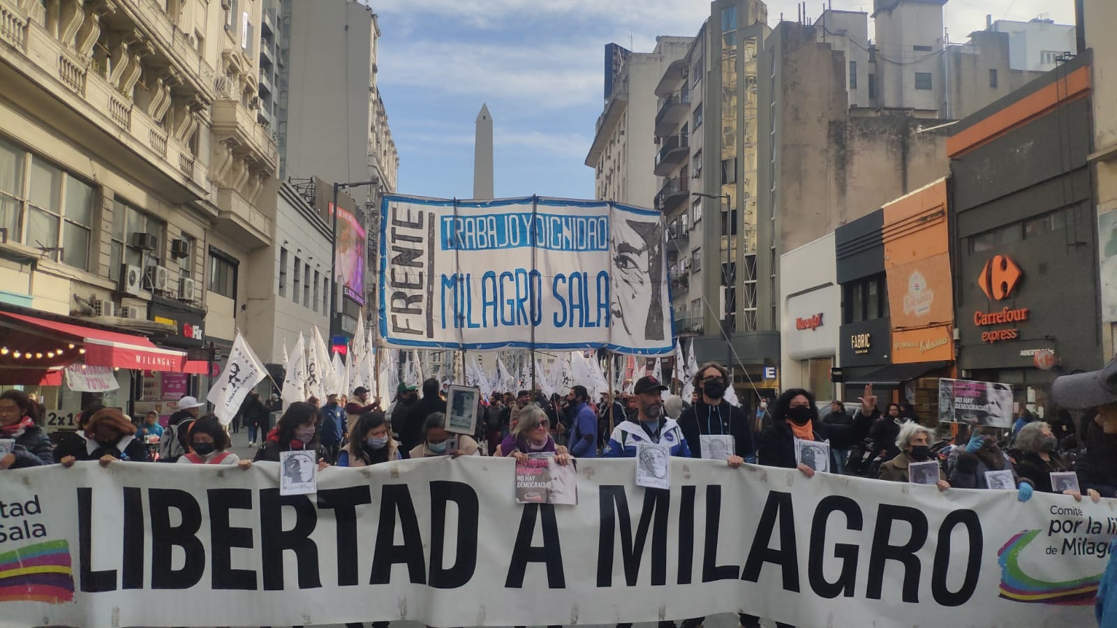 Organizaciones sociales, gremiales y políticas se movilizaron desde el Obelisco hasta el Ministerio de Justicia para gritar que el gobernador jujeño Gerardo Morales “sigue presionando a la Justicia para que Milagro Sala vuelva a la cárcel” y para reclamar el fin del “revanchismo” contra la líder de la organización política Túpac Amaru.