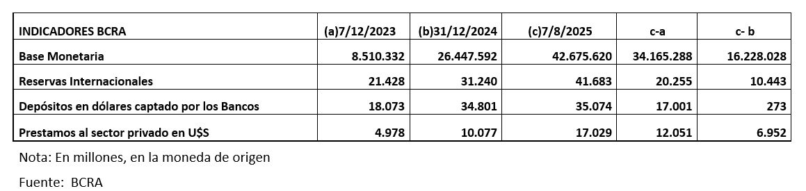 El aumento de las Reservas Internacionales brutas del BCRA, desde el viernes 7 de diciembre 2023 al 7 de agosto 2025, fue de 20.255 millones de dólares