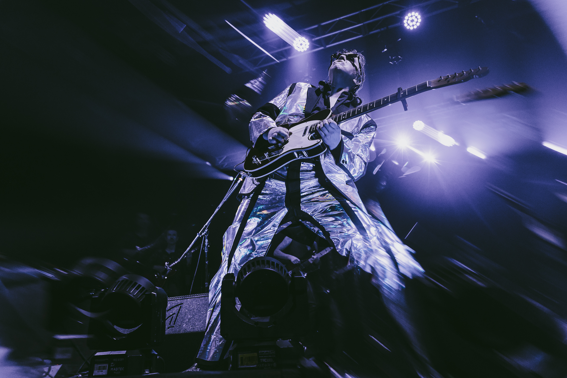 Cuando llegó el momento de Lucy, las luces se apagaron y comenzó el viaje. Una puesta en escena sin pantallas, pero con aires futuristas en los vestuarios y en el inicio, desde la oscuridad, revelando cara a cara los músicos que serían parte de su armada. “Vecindario” y “Lo Caro”, los dos primeros cañonazos que disparó Lucy desde su Gibson en los que mostró que con sus temas hace lo que quiere, como una especie de Jack White hardcore suburbano.