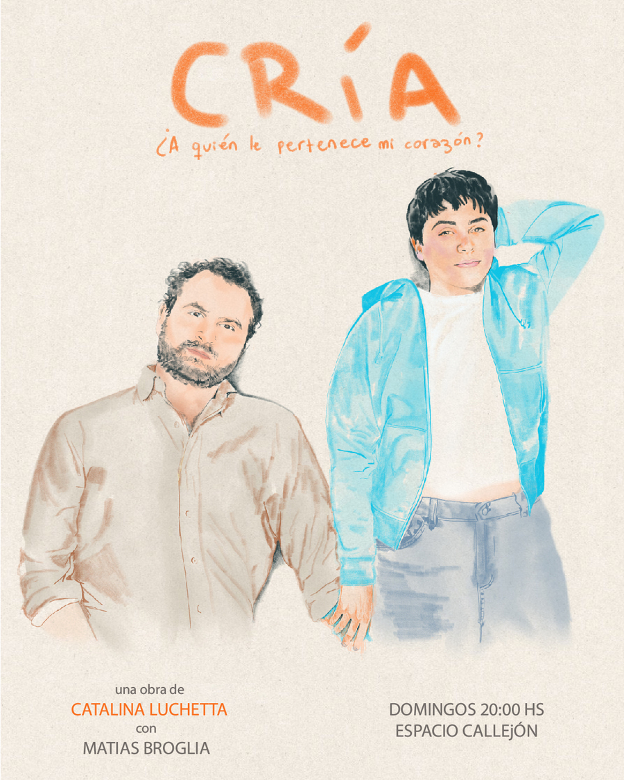 Catalina Luchetta se define principalmente como actriz, aunque también es guionista y directora de teatro. Este año estrenó su primera obra, que narra su historia. “Cría, ¿a quien le pertenece mi corazón?” se puede ver los domingos a las 20 horas en Espacio  Callejón, Humahuaca 3759 en el barrio porteño de Almagro.