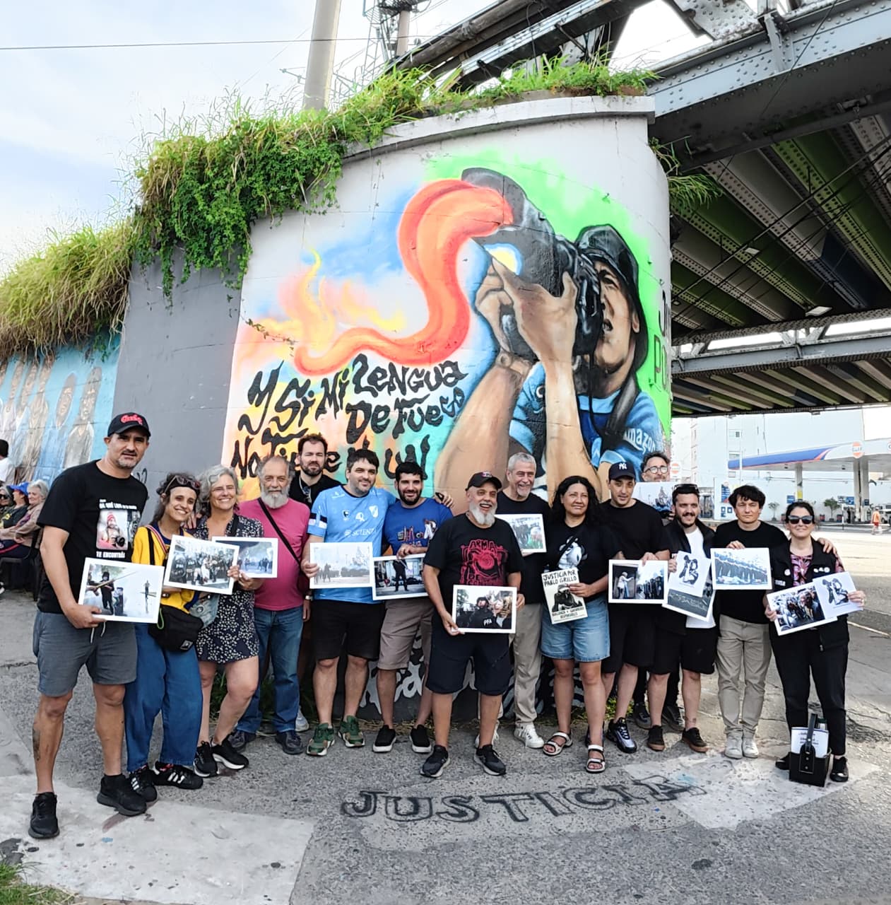 Allí, en la pared debajo del puente de las vías, pintaron un mural con una imagen icónica de Pablo registrando con su cámara y con la leyenda “Justicia por Pablo Grillo“. Una imagen sobre una avenida muy transitada y en el camino al estadio de Independiente, club del cual es fanático Pablo y la familia Grillo.