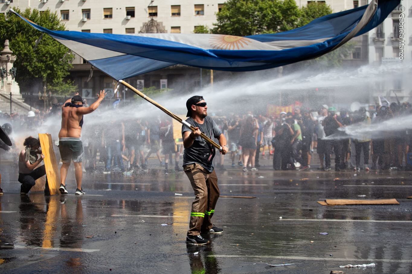 Represión en 9 de Julio. Carros hidrantes y motos disparan contra una columna que se retiraba por Carlos Pellegrini. pic.twitter.com/Ajadt2Ra9u