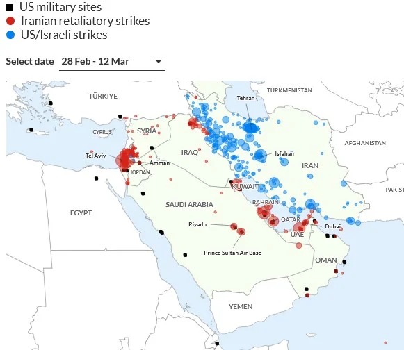 Esto por un lado impide a las defensas de los países de la región disponer de tiempo de activar sus defensas correctamente. Pero a su vez disminuye el tiempo en que Israel puede interceptar los ataques iranies, si antes casi desde que salían de sus lanzaderas los sistemas israelíes y se sus aliados actuaban, ahora la detección es mucho más próxima en muchos casos. Así aumenta la eficacia iraní lo que le permite que con menos lanzamientos se mantenga la amenaza. Segundo, obliga a EEUU a dispersar sus capacidades en múltiples escenarios que comienzan a reclamar reposición de sus arsenales (y no tomamos en cuenta en este análisis a la misma Ucrania). Tercero coloca bajo amenaza toda la infraestructura critica de las monarquías, a energía en general afectando el mercado mundial. Pero también la misma infraestructura critica para la supervivencia en el desierto como el agua. Y evidentemente saca del circuito mundial de “los CEOS” y de turismo esos países. ¿quine va a ir a Doha, a Abu babi etc.? Para que la confianza en que tener tropas de EEUU en el país sea nuevamente un hecho de seguridad y no de riesgo, EEUU debería lograr una victoria clara, cosa que aún no se ve.