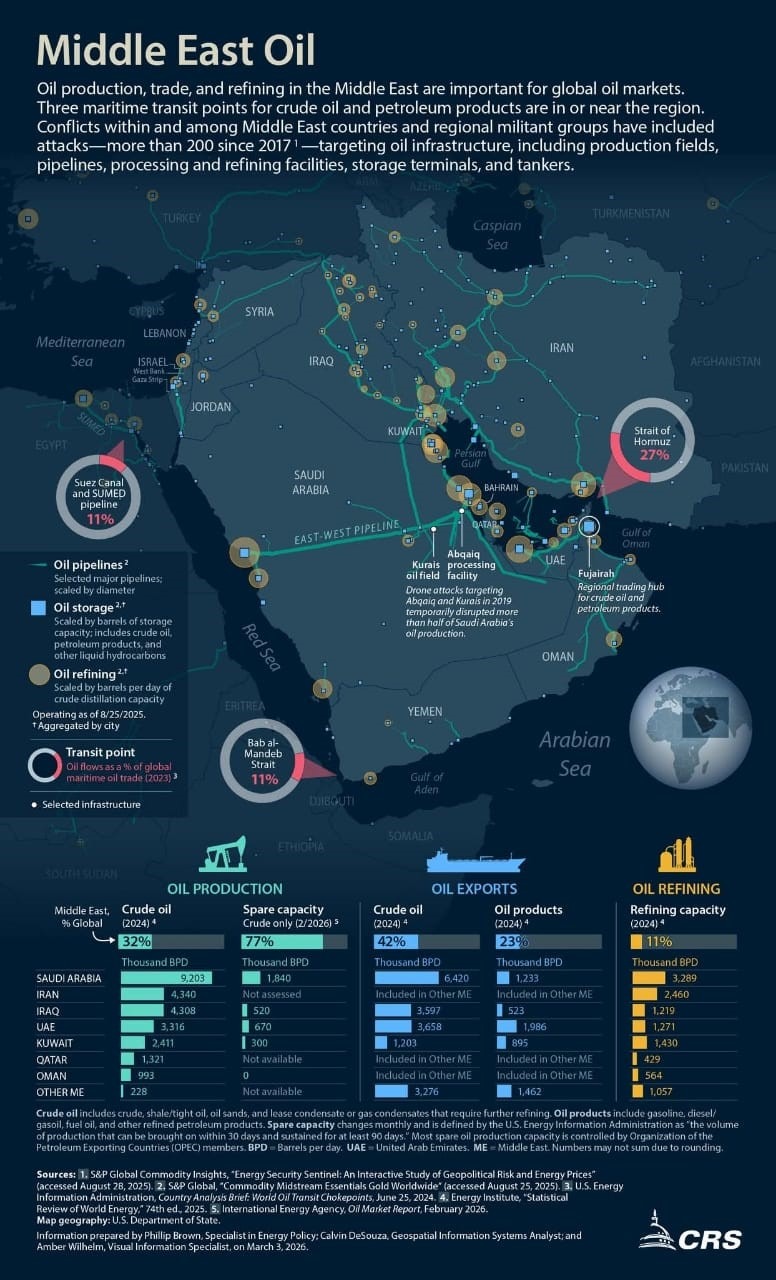 Por último, es de destacar en este punto que Irán arriesga que estos pases ´puedan implicarse mucho más eficazmente en su contra, más que con sus FFAA (cosa posible pero no central, EEUU e Israel debería coordinar operaciones con otras fuerzas lo que es muy difícil, o suele ser muy difícil) sino “lubricar” las finanzas de los agresores. Y por otro lado como el bloqueo de Ormuz, es Irán también un perjudicado, la principal fuente de divisas es la exportación petrolera y esta sin dudas se verá afectada por esta guerra. Ciertamente Irán ante una cuestión de supervivencia pude decidor absorber estos costos, pero en una situación económica y social tensa implicara un gran sacrificio (aunque puede ser asumido como impuesto por el enemigo esto es claro). Por ello Irán señala que “no hay bloqueo” sino solo a sus enemigos. En realidad, algunos funcionarios irónicamente declaran que “no hay bloqueo” sino que “los barcos no quieren pasar”; aunque el mismo Ayatollah supremo indicó hoy que Ormuz será clave para la estrategia iraní y de hecho los ataques al neutral Oman implican justamente la decisión iraní de no dejar puertas abiertas a cualquier alternativa segura.