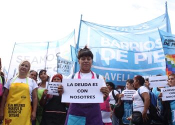 La manifestación frente al edificio del ministerio (Balcarce 186) se realizó bajo la consigna “Sin feminismo popular no hay Ni ...